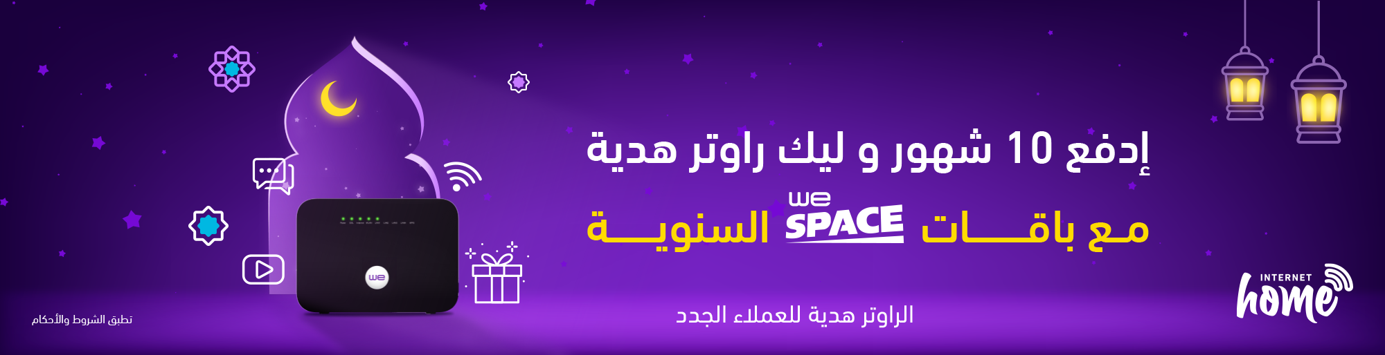 للعملاء الجدد، اشترك الأن في الباقات السنوية من WE SPACE وإدفع حتي 10 شهور فقط وكمان ليك راوتر هدية.