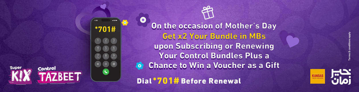 - The voucher is only available to all existing Control Kix and Tazbeet customers starting from the 40 EGP bundle