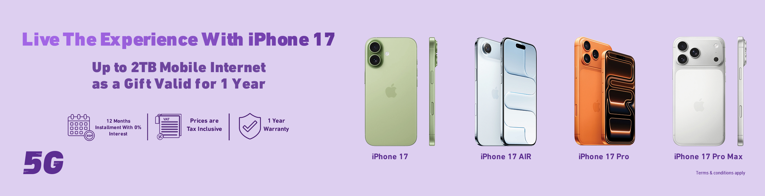 - You will get monthly GBs Upon Purchasing a new iPhone 17 device, either in Cash or in Installment at WE stores only.