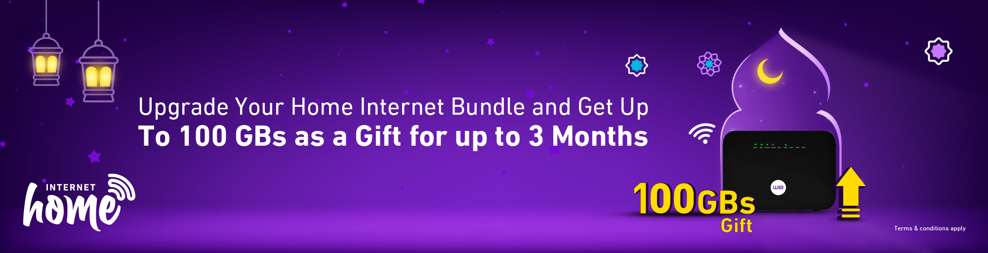 When you upgrade your WE Space Home Internet package you will get up to 100 GBs for up to 3 months