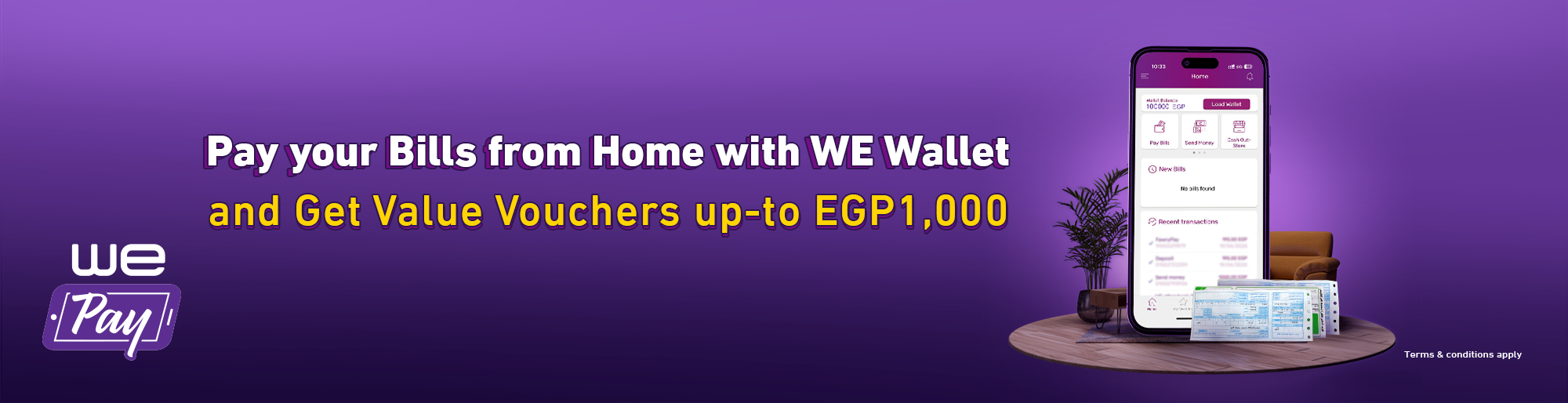 • The minimum value of transactions on WE Pay is EGP100 to be able to subscribe to the vouchers offer.