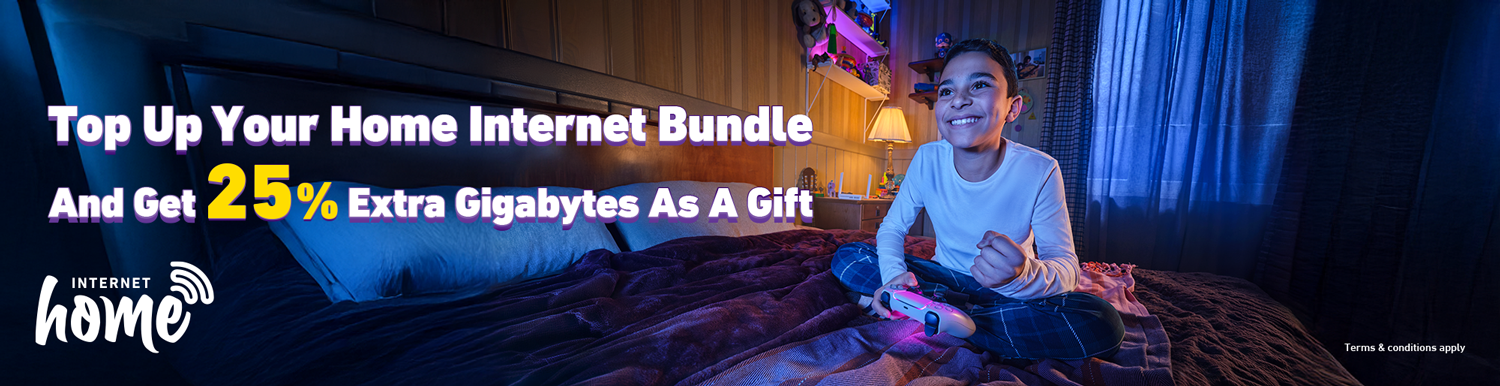 Top-up your Home Internet bundle & get 25% extra gigabytes as a gift, so you can enjoy watching all Ramadan series